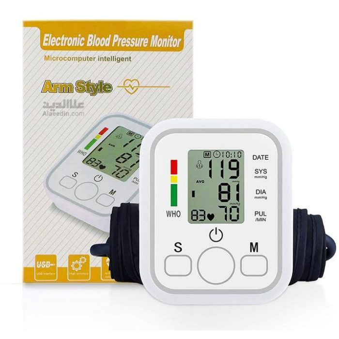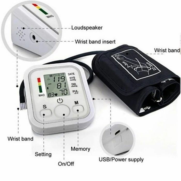 ذخیره اطلاعات ۹۹ اندازه گیری آخر برای ۲ نفر مجزا، * دارای صفحه نمایش بزرگ و با وضوح بالا براي افراد سالمند، * دقت اندازهگیری فشارخون این دستگاه برابر با ±۰.۴ کیلوپاسکال (±۳ میلیمتر جیوه) و دقت اندازهگیری ضربان قلب ±۵٪ میباشد، * تغذیه این فشارسنج دیجیتال هم می تواند با ۴ عدد باتری نیم قلم (AAA) باشد و هم قابلیت اتصال با کابل USB-C به هرگونه شارژر موبایلی (حداقل ۵۰۰mA) و یا پاوربانک را دارد. *** توجه داشته باشيد، در تمامي فشارسنجهاي ديجيتالي، براي افزايش دقت اندازه گيري مي بايست در مدت زمان اندازه از صحبت كردن و تكان دادن دست كه بايد در راستاي قلب و آزاد باشد خودداري كرده، و همچنین کاف باید روی خود بازو (بدون لباس) در محل درج شده در دفترچه راهنما قرار گیرد، درضمن درصورت نياز به تكرار اندازه گيري يا حتی اندازه گيري براي فرد ديگر، کاف فشارسنج را از دست خود باز کنید، تا خون بطور طبیعی جریان یابد و نیز حدود ۵ دقيقه به موتور دستگاه استراحت دهيد.