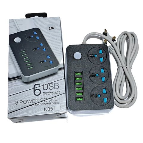 چند راهی برق K05 دارای چندین قابلیت کاربردی می باشد این محصول دارای سه خروجی یونیورسال برق شهری (قابلیت اتصال انواع سرسوکتهای EU-AU-US-UK – دو شاخه و سه شاخه در انواع مختلف) و 6 خروجی یو اس بی استاندارد با توان 3.4 آمپر به صورت فست شارژ می باشد . همچنین این محصول دارای بدنه ضد حریق تا دمای 750 درجه و سیستم ایمنی کودکان می باشد . قابلیت تبدیل ورودی اتوماتیک بین 110 تا 250 ولت برای برق شهری متفاوت را دارد و سیستم حفاظت اضافه جریان با طول کابل ای محصول 2 متر میباشد .
